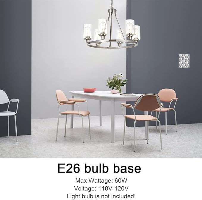 - BULBS TYPE: Support any LED/CFL/or other less than 60W bulbs with E26 Base for this chandelier lighting (Bulbs NOT Included). Could be fully dimmable when used with dimmable bulbs and compatible dimmer switch