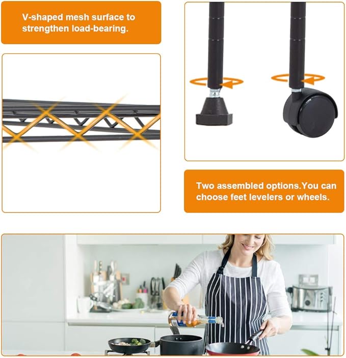 - HEAVY-DUTY & FLEXIBLE SETUP: Use feet levelers for up to 750 lbs total (150 lbs per shelf) or caster wheels for easy mobility, supporting up to 220 lbs when weight is evenly distributed.
