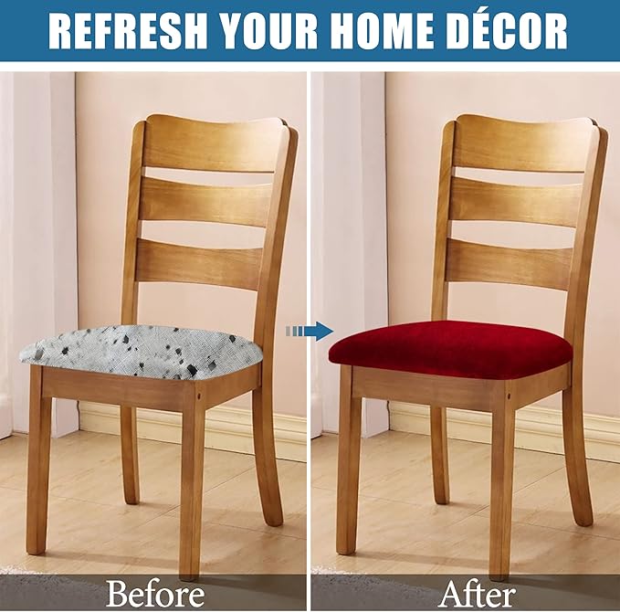 - [Protect & Decor Your Chairs] Velvet seat covers for chairs give your old chairs new look and protect your chair furniture from dust, stain, daily wears and scratch. This is an ideal choice to decorate and restyle your chair for families with children and pets