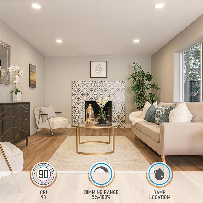 - CRI90 & Dimmable: The 6 inch slim recessed lighting not only offers an dimming range from a cozy 5% to vibrant 100%, but also incorporates a high CRI90. These lights ensure that your space is illuminated with true and vivid colors, enhancing the overall ambiance