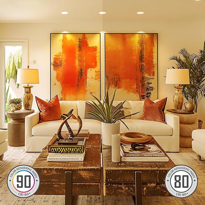 - CRI90 & Dimmable: The 6 inch slim recessed lighting not only offers an dimming range from a cozy 5% to vibrant 100%, but also incorporates a high CRI90. These lights ensure that your space is illuminated with true and vivid colors, enhancing the overall ambiance