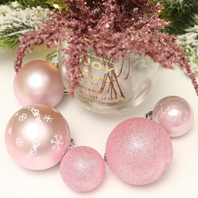 Sea Team 86-Pack Shatterproof Pink Christmas Ball Ornaments Set, Assorted Multi-Sized Hanging Baubles, Xmas Tree Decorations, Seasonal Décor for Holiday Wreath Garland, Hooks Included