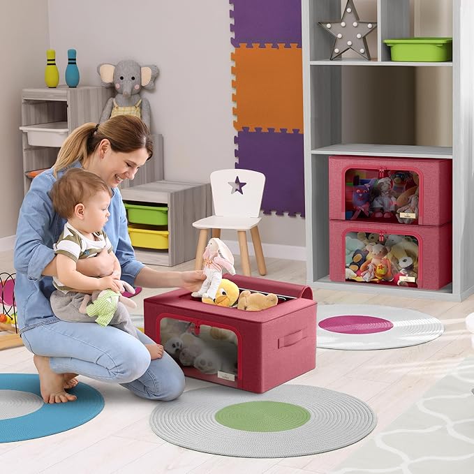 Sorbus Storage Bins with Metal Frame - Stackable & Foldable Clothes Organizer Bags - Oxford Fabric Storage Containers with Large Clear Window & Carry Handles, Bedroom Organization for Bedding & Linen