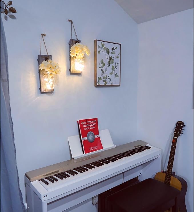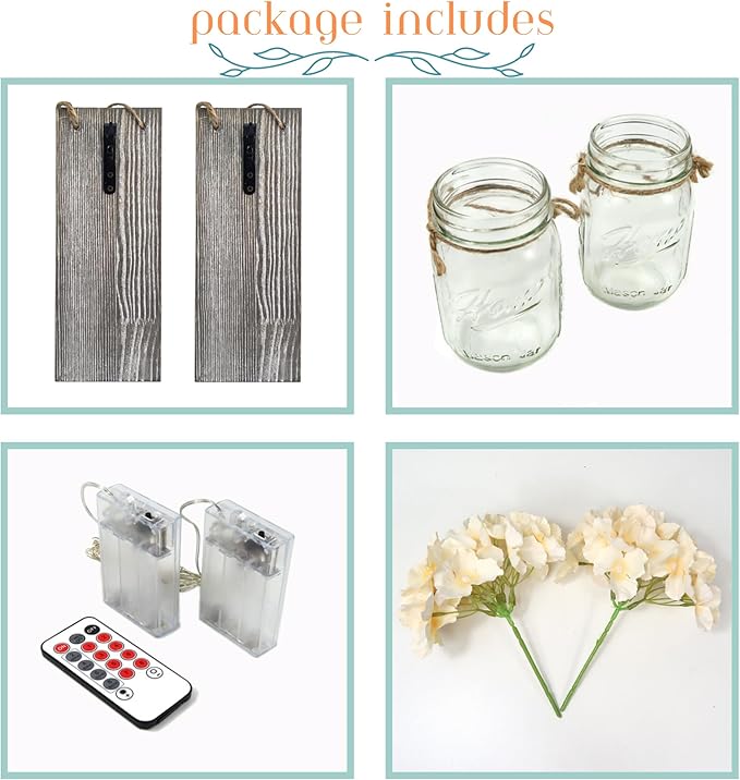 - FARMHOUSE WALL DECOR – Add rustic charm to your home with mason jar wall decor featuring distressed wood panels and LED string lights. These farmhouse wall sconces set of two complement modern or traditional styles, ideal for home wall decor for living room, bedroom, hallway, or entryway.