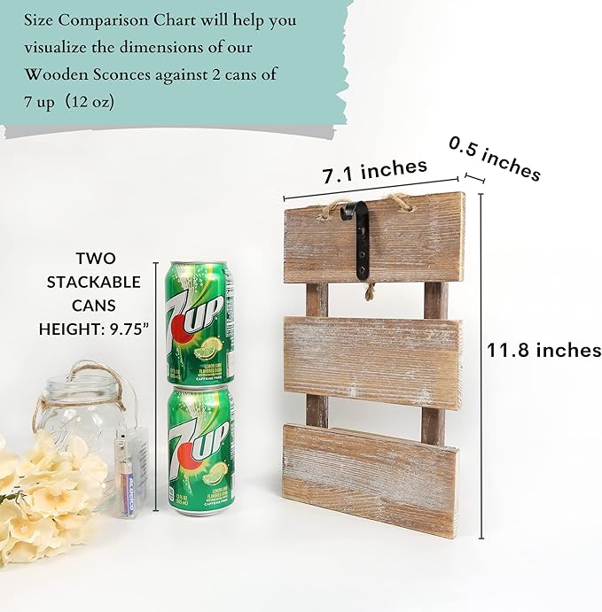 - Crafted from Natural Wood – Each sconce is unique in texture and color, measuring 11.8" H x 7.1" W, adding authentic farmhouse charm to your home.