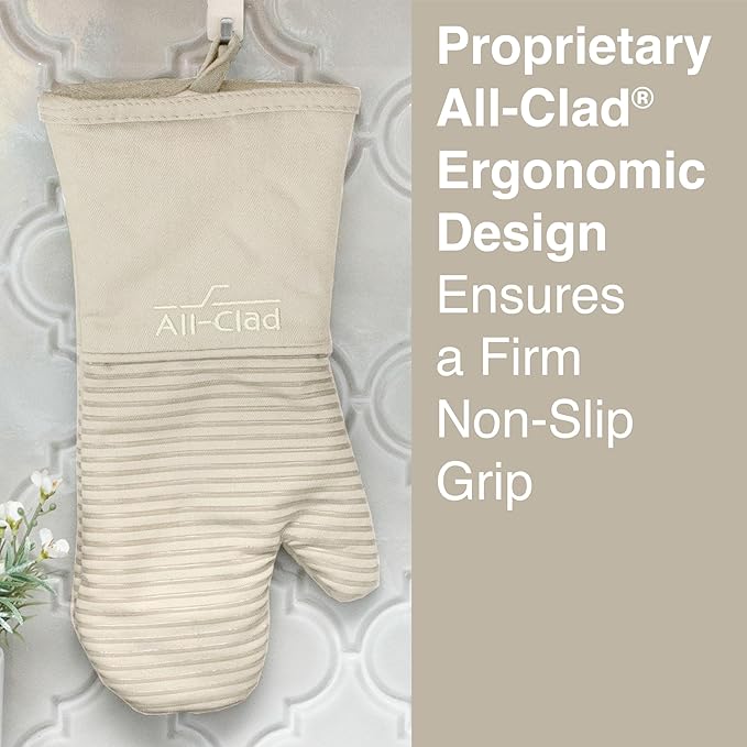 All-Clad Silicone Oven Mitts: Heat Resistant up to 500 Degrees - 100% Cotton & Silicone, 14"x7" Oven Mitt for Kitchen and Barbeque, 2-Pack, Almond
