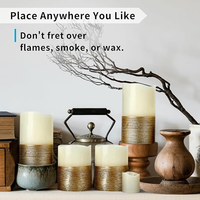 FURORA LIGHTING Gold Real Wax Trim Candles with Remote and Timer, Pack of 8 Pillar & Votive Candles, LED Flameless Flickering Candle for Home Dรฉcor, Battery Included