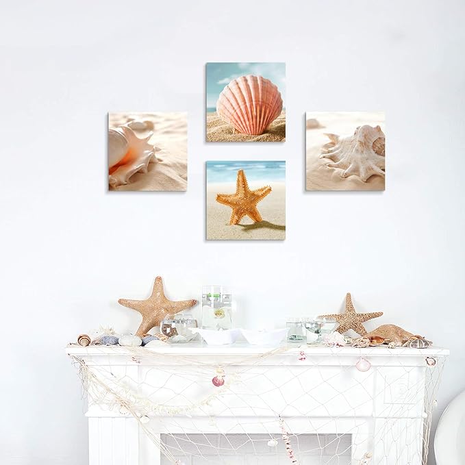 - Seashell Art Wall Decor: This seashell wall art canvas features seashells on sandy beach, add a touch of seashore elegance to your space