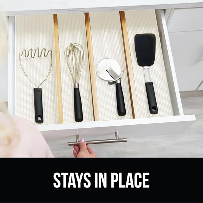 - KEEP ITEMS IN PLACE: thick and durable Gorilla Grip Drawer and Shelf Liners line your drawers and effectively helps to prevent items from moving and shifting around
