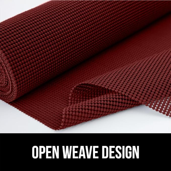 GORILLA GRIP powerGRIP Drawer Shelf and Cabinet Liner, Thick Strong Hold, Non-Adhesive Liners Protect Kitchen Cabinets and Cupboard, Bathroom Drawers, Easy Install, Breathable Mat, 12" x10', Red