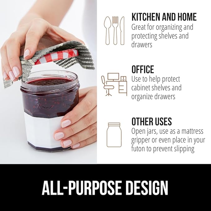 - EXTRA STRONG GRIP NON-ADHESIVE LINER: the Gorilla Grip powerGRIP liner is a non adhesive and tear resistant liner engineered with the highest quality materials to reduce slipping and bunching in your drawers or cabinet shelves; superior gripping technology keeps both the liner in place on surfaces