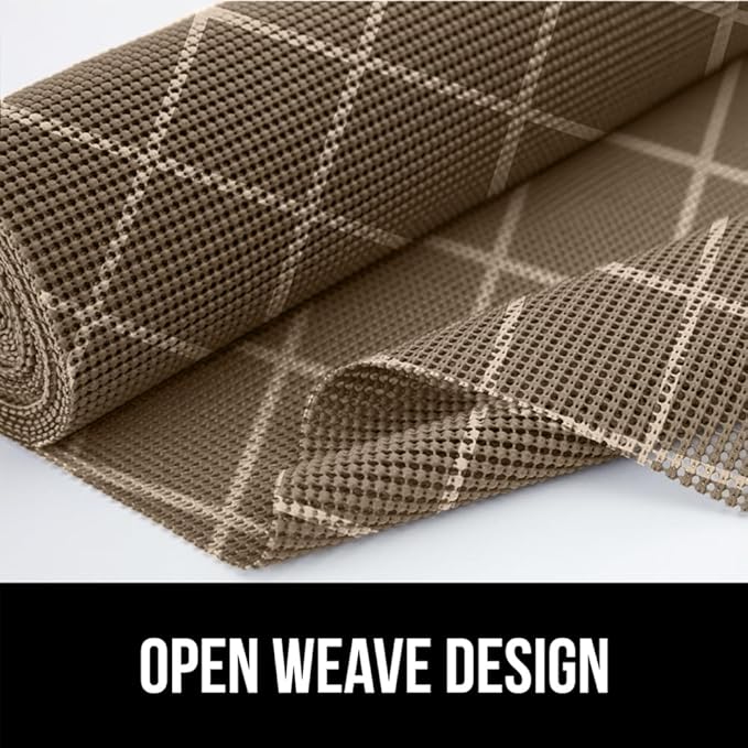 GORILLA GRIP powerGRIP Drawer Shelf and Cabinet Liner, Thick Strong Hold, Non-Adhesive Liners Protect Kitchen Cabinets and Cupboard, Bathroom Drawers, Easy Install, Breathable Mat, 12" x10', Beige