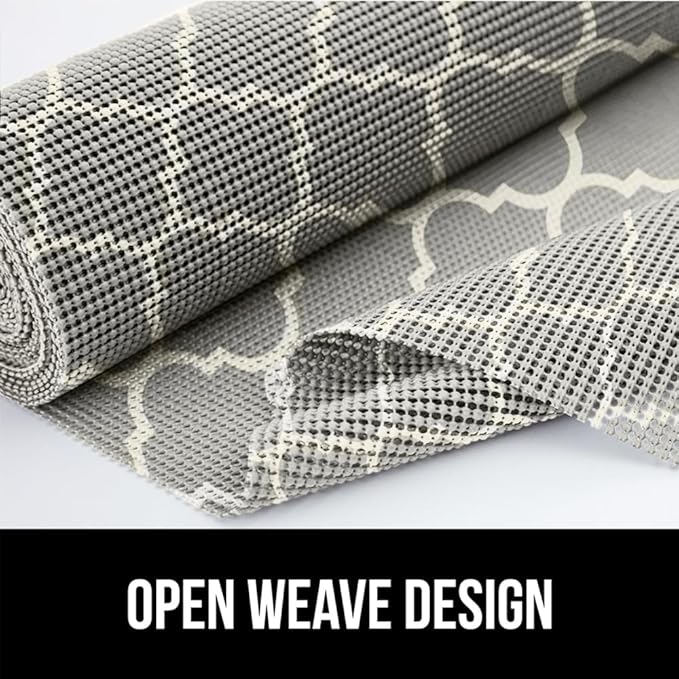 GORILLA GRIP powerGRIP Drawer Shelf and Cabinet Liner, Thick Strong Hold, Non-Adhesive Liners Protect Kitchen Cabinets and Cupboard, Bathroom Drawers, Easy Install, Breathable Mat, 17.5" x30', Gray
