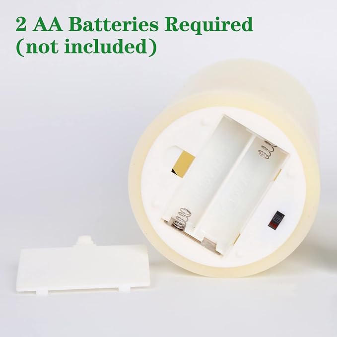 - Battery Powered Candles - Each candle is powered by 2 AA batteries (not included), lasting over 350 hours, remote takes 1 cr2025 coin cell ( included).