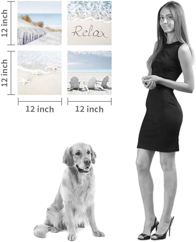 - Seascape Art Wall Canvas Painting: Wipe with dry cloth only. A set includes 4 panels of beach artwork for walls. Set them side by side. Copyright licensed image with high resolution definition