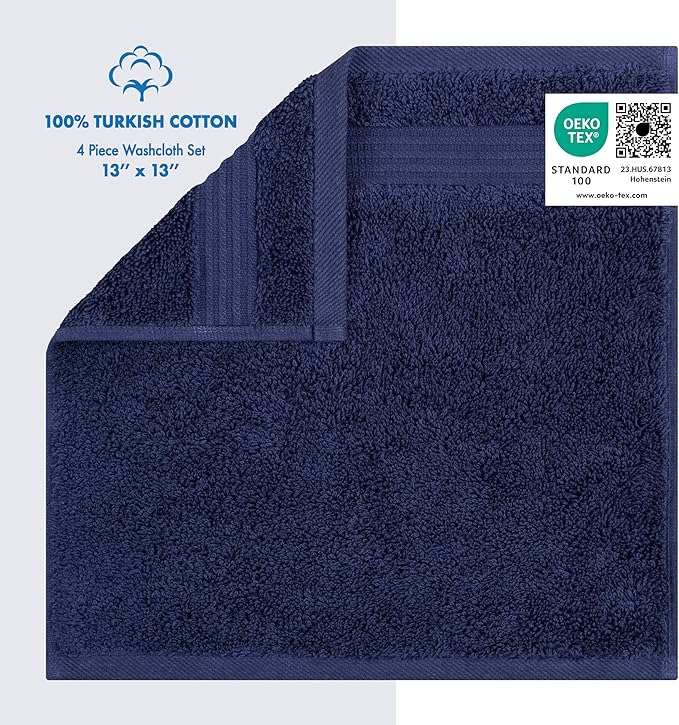 Cotton Paradise 100% Cotton Turkish Washcloth Set for Bathroom, 4 Piece Soft Absorbent Small Hand Face Towels Wash Rags, Navy Blue