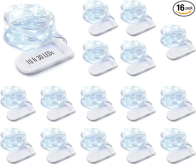 MUMUXI Battery Operated 16 Pack of Copper Wire LED Fairy Lights, 10ft Cool White, Easy to Shape, Waterproof, Indoor/Outdoor Use