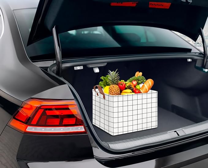 CLOCOR Rectangular Storage Basket,Collapsible Cute Pattern Storage Bin,Waterproof Coating Storage Box with Handles,Gift Baskets,Shelf Basket (white checks)