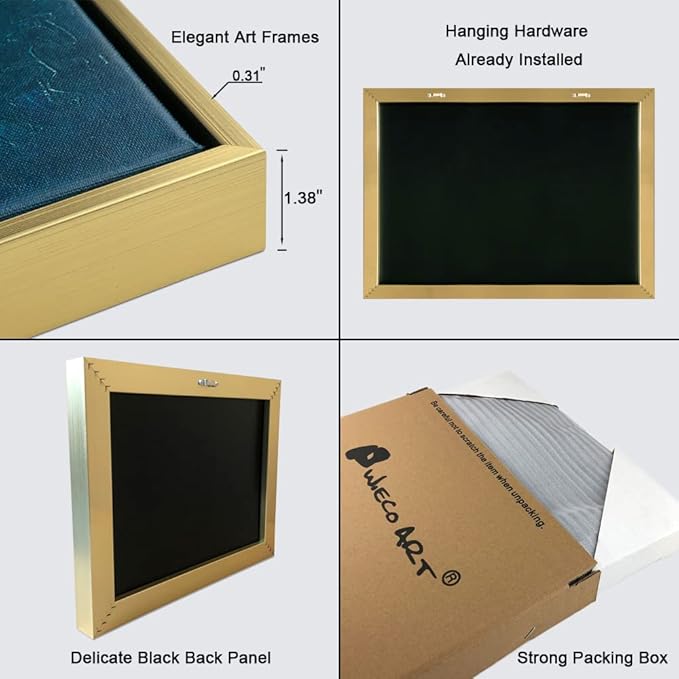 - High quality framed art. Frame is of PS lightweight environment protection material, moisture-proof, no smell (so it is also safe to be placed in the children's room). Golden finish frame is designed to beautify many different spaces in your home.