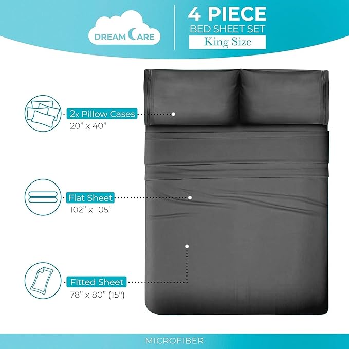 - ✔ READ THE MANUAL CAREFULLY: Please read the instruction manual provided with the DreamCare bed sheets set closely before use. If you have any questions or issues regarding the set, please do not hesitate to send the seller a message through Amazon and we will respond within 24 hours.