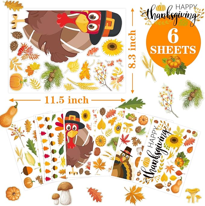 - VALUE PACKAGE :6 Sheet thanksgiving window clings, each measures 11.5inch *8.3inch, 111PCS fall window clings in total.So much quantity would meet your need for Thanksgiving window decoration to great extend.