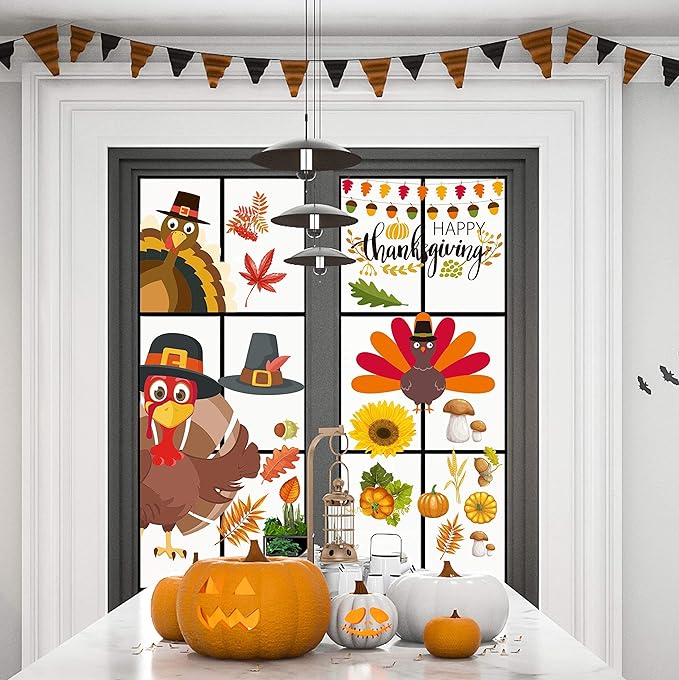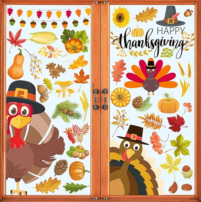 - RELIABLE MATERIAL: Thanksgiving window stickers are made of PVC material with delicate stickiness, durable and waterproof, easy to keep shape and no residue remained when peeling off from windows.