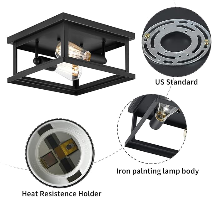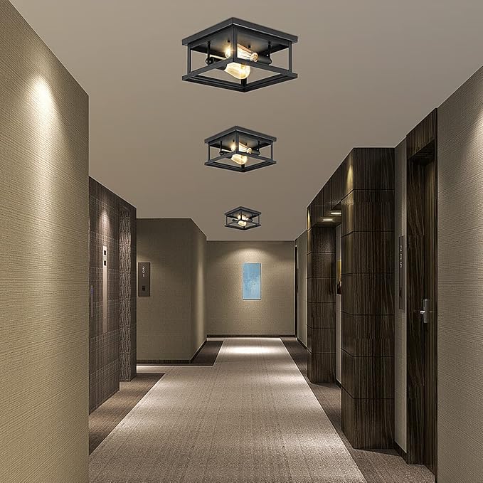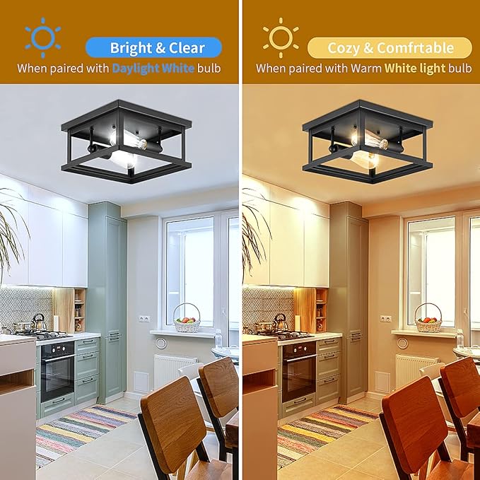 Drosbey 2-Light Flush Mount Ceiling Light Fixture, Farmhouse Light Fixtures, Industrial Vintage Ceiling Light for Kitchen, Bedroom, Hallway, Laundry