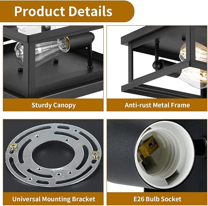 - 【Bulb Requirements】 2 x 60W (MAX) E26 Bulb Base (Bulb Not Included), compatible with LED, Incandescent, CFL, Halogen bulb. 2 light sources bring enough and even light to illuminate the entire space, meets your need of home lighting.