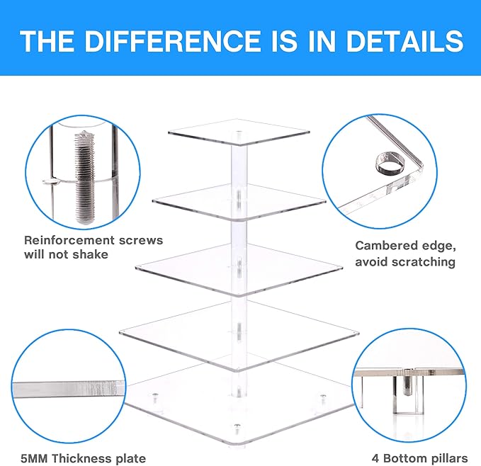YestBuy 5 Tier Cupcake Stand Acrylic Cupcake Tower Display with LED Light Premium Cupcake Holder Dessert Tree Tower for Birthday Cady Bar Party Décor Weddings, Birthday Parties Events (Blue Light)