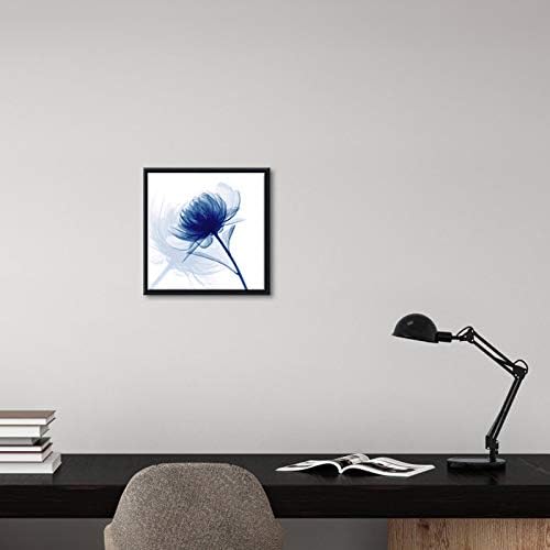 Pyradecor Black Framed Canvas Wall Art Blue Flickering Flower Modern Grace Floral Pictures Paintings on Canvas Prints One Panel Artwork for Bedroom Office Home Decorations