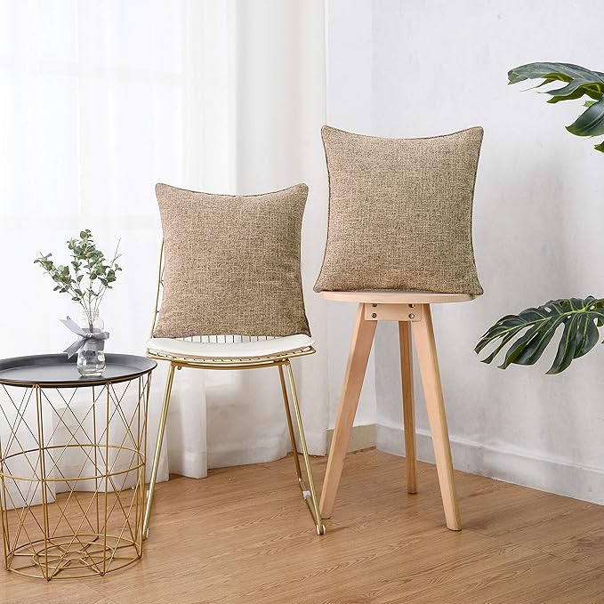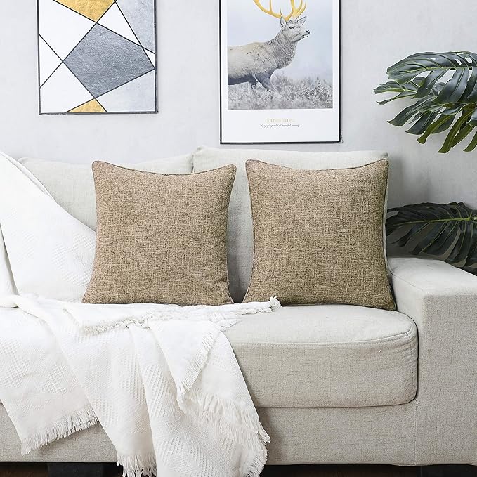 HPUK Pack of 2 Tan Throw Pillow Covers, 18x18 inch Accent Throw Pillows for Living Room, Bedroom, Dorm, Decorative Tan Pillow Covers for Couch, Sofa, Light Brown