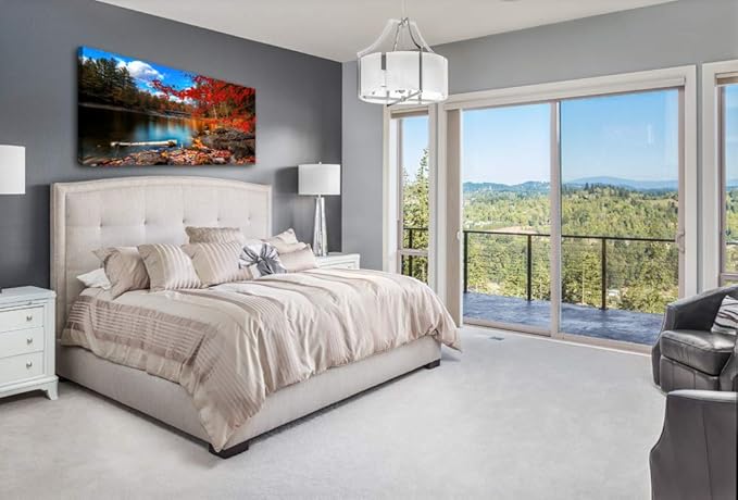 DZL Art S72674 Canvas Wall Art Canvas Artwork Lake Mountain Red Maple Leaf National Park Nature Pictures for Living Room Bedroom Office Wall Decor Home Decoration