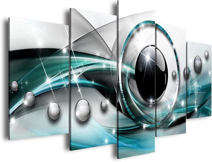 AWLXPHY Decor Abstract Canvas Wall Art Blue and Black Framed Painting for Living Room Decor Modern Simple Circle Line HD Print Artworks Giclee 5 Piece (Teal, W60'' x H30'')