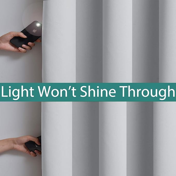 Yakamok Full Blackout Curtains 72 Inches Long,Blackout Curtain Panels for Bedroom, 2 Thick Layers Grommet Top Thermal Insulated Drapes with Black Liner for Living Room(Light Grey, Set of 2)