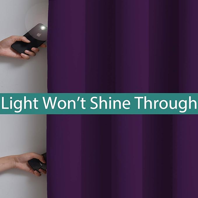 - 100% BLACKOUT:This magic blackout lined curtain panel is constructed with 2 layers fabric which can achieve 100% BLACKOUT. The heavyweight fabric is made from 100 percent high quality polyester. The design of sewing in black liner backing makes the curtain thick enough to completely block out the 100% sunlight and UV ray, protecting individual privacy.