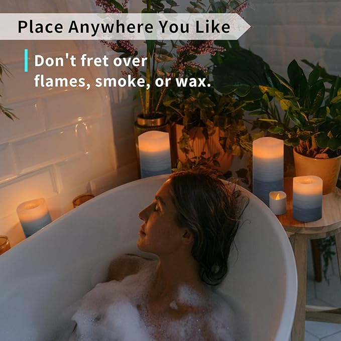 - 🕯️ Soothing Blue Ombre Glow, Safe for All: Enjoy the calming beauty of blue ombre candles—flameless, mess-free, and safe for kids and pets.