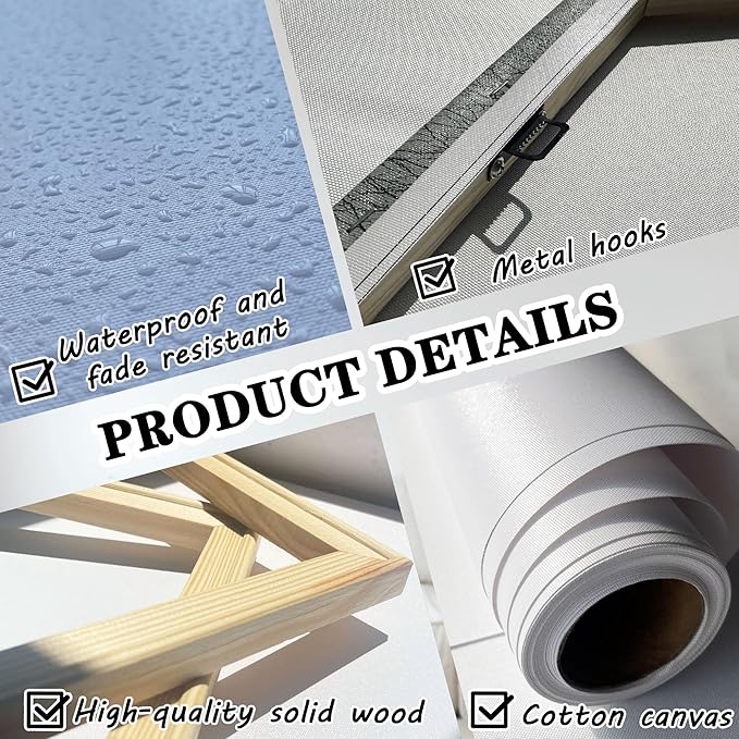 - HI-Q MATERIAL: high quality, HD prints on premium canvas, waterproof, UV resistant, fading resistant indoor. But colors may appear slightly different to each user due to individual monitors.