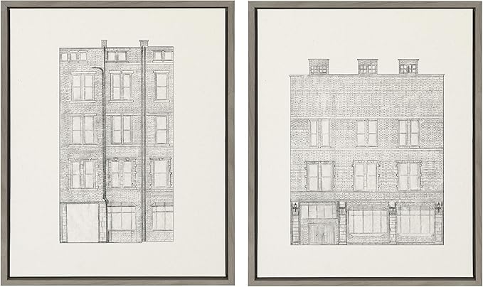 Kate and Laurel Sylvie Brick Building Façade Framed Canvas Wall Art by Viola Kreczmer, Set of 2, 18x24 Gray, Boho Chic Wall Decor
