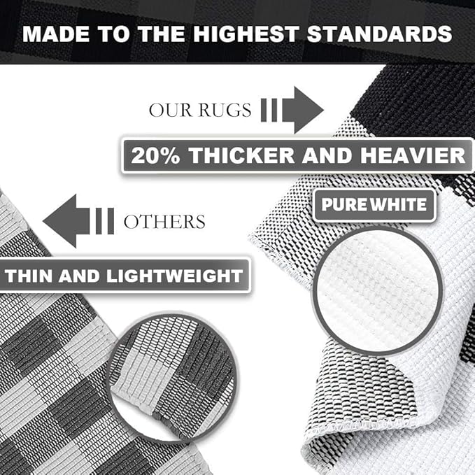 - Machine Washable Rug: The black and white rug is machine washable for easy care. Vacuum, shake, or wipe to refresh, or machine wash on a delicate cycle for deep cleaning. Air dry recommended to preserve quality; no bleach, no dryer to extend rug life