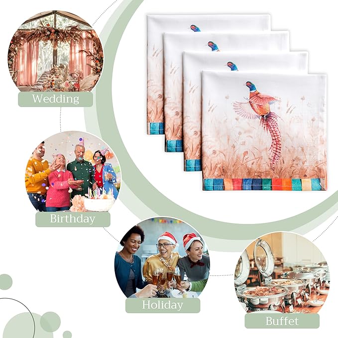 Maison d' Hermine Cloth Napkins Set of 4 100% Cotton Everyday Reusable Square Napkins Cloth Washable, Dinner, Party, Wedding, Restaurant (Faisan D'Automne, 20" x 20")