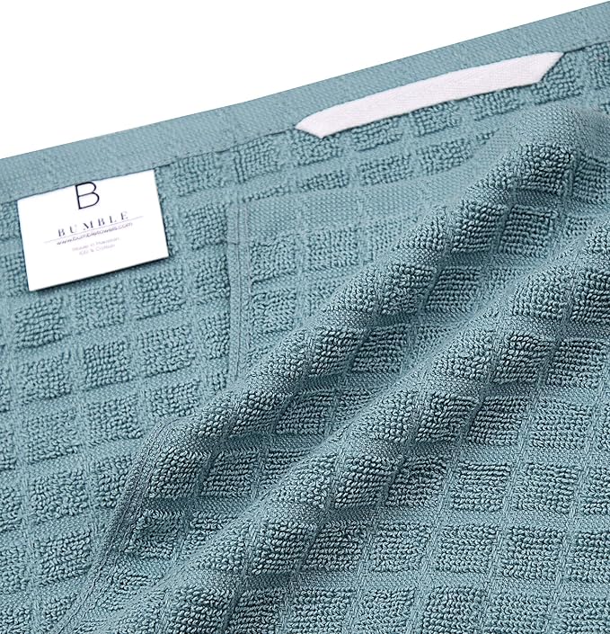 Bumble Kitchen Towels | 100% Cotton Dish Towels with Hanging Loop | 16"x 28" | 380GSM | Absorbent Kitchen Towel Set | 6 Pack, Aqua