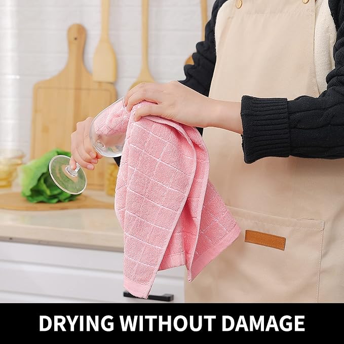 Homaxy 100% Cotton Terry Kitchen Towels(Pink, 13 x 28 inches), Checkered Designed, Soft and Super Absorbent Dish Towels, 4 Pack