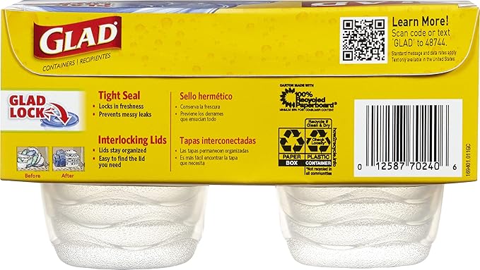 - MICROWAVE SAFE – Glad containers won’t melt or warp in the microwave, making it easier than ever to keep your kitchen mess-free. Store, heat, and eat right out of Gladware. Simply lift one corner of the lid before microwaving