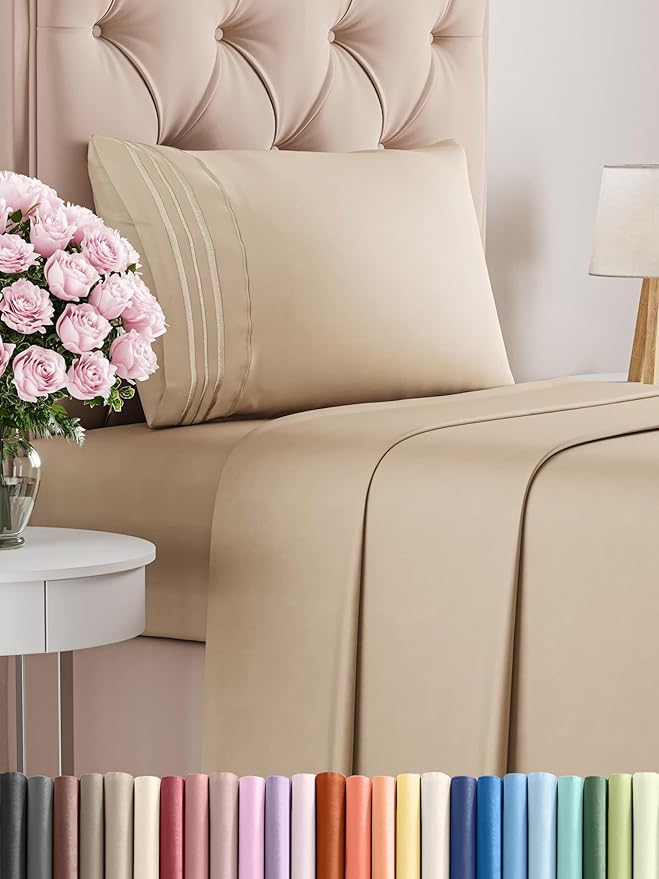 Twin Size 3 Piece Sheet Set - Comfy Breathable & Cooling Bed Sheets Set - Hotel Luxury Bedding for Women, Men, Kids, Teens, Boys & Girls - Deep Pockets, Ultra-Soft and Wrinkle Free - Oeko-Tex - Cream