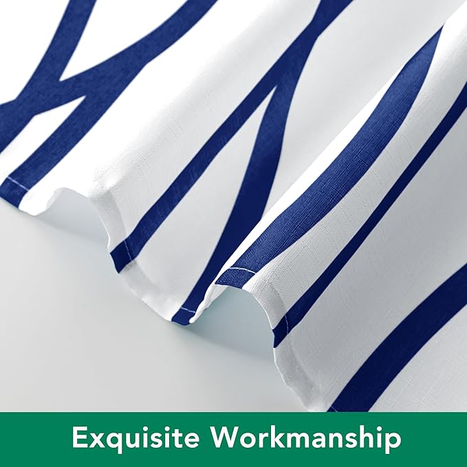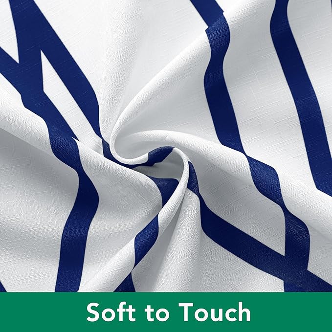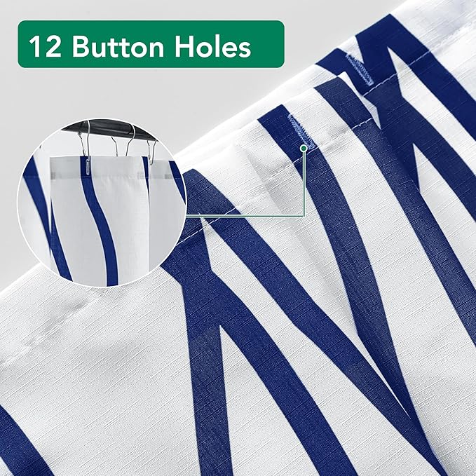 Biscaynebay Extra Long Textured Fabric Shower Curtain 72 W x 84 L, Navy Striped Printed Linen Modern Hotel Luxury Quality Cloth Bathroom Curtains Machine Washable