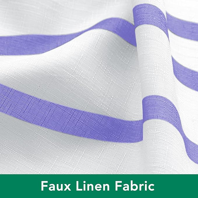 Biscaynebay Extra Long Textured Fabric Shower Curtain 72 W x 84 L, Lavender Printed Striped Linen Modern Hotel Luxury Quality Cloth Bathroom Curtains Machine Washable