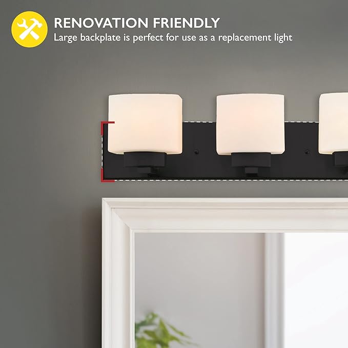 - Traditional Style Vanity Light: Stunning matte black finish with square frosted glass shades that can be mounted up or down