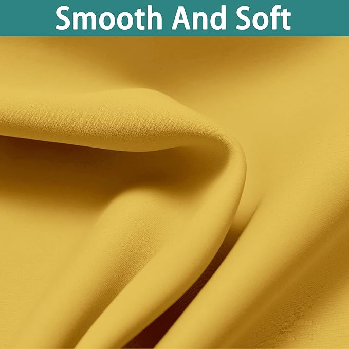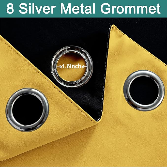 Yakamok Thermal Insulated 100% Blackout Curtains for Bedroom, Double Layer Full Room Darkening Noise Reducing Grommet Curtains, Heat Blocking Drapes for Living Room(52Wx63L, Mustard Yellow, 2 Panels)