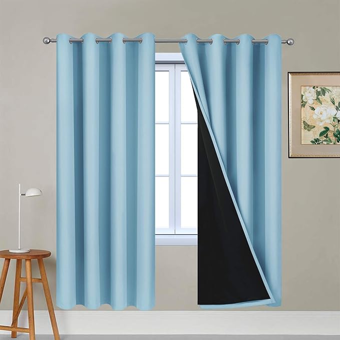 Yakamok 100% Blackout Lined Panels, Thermal Insulated Blackout Curtains for Bedroom, Heat Blocking Drapes for Living Room(52Wx72L, Sky Blue, 2 Panels)