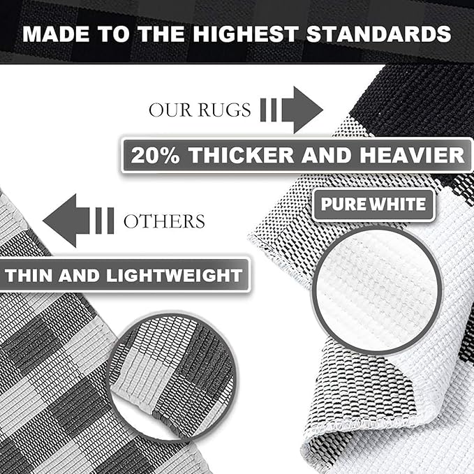 - Timeless Plaid Design: This black and white checkered rug features a classic pattern, merging modern and classic elements for style. A thoughtful gift for housewarmings, holidays, or new homes—blending style and practicality